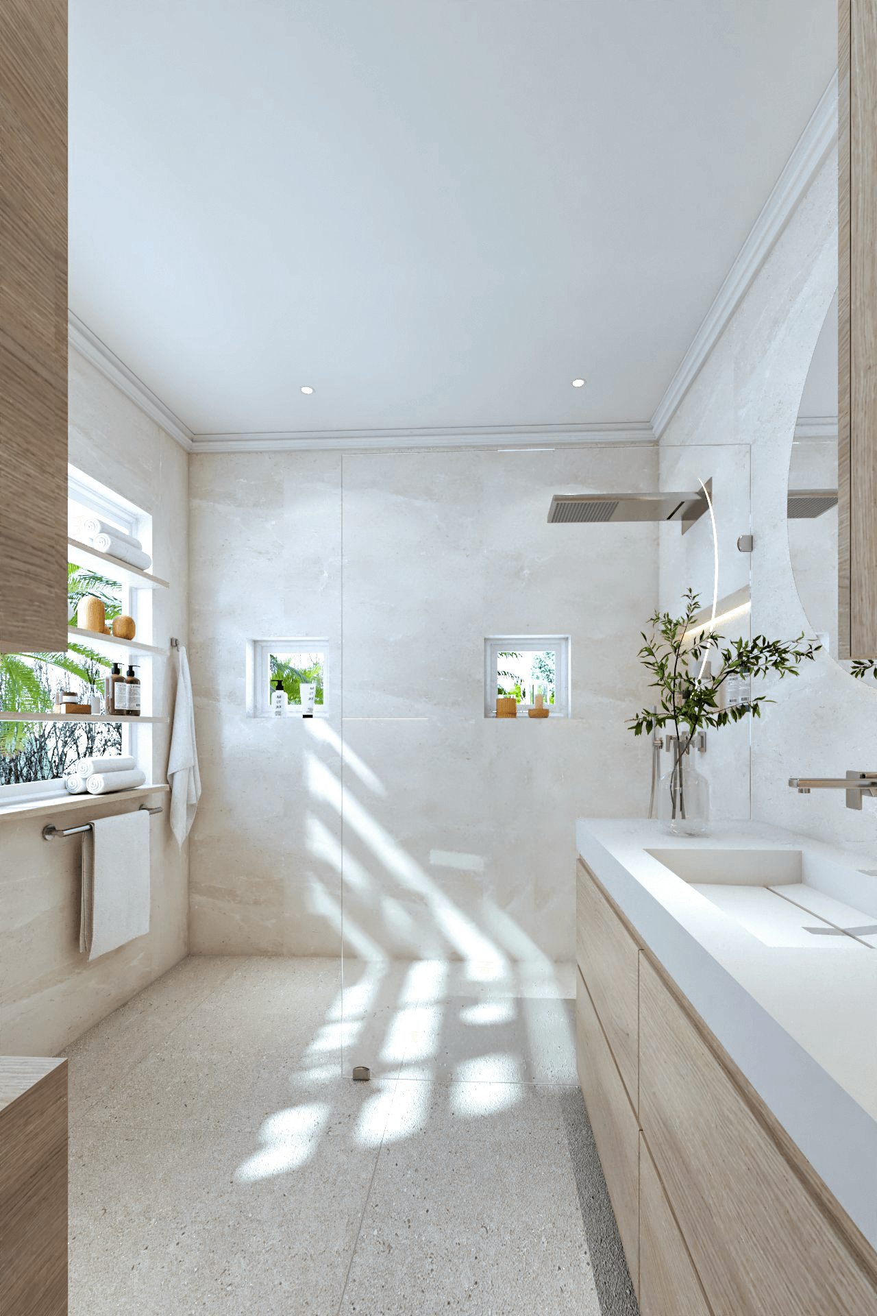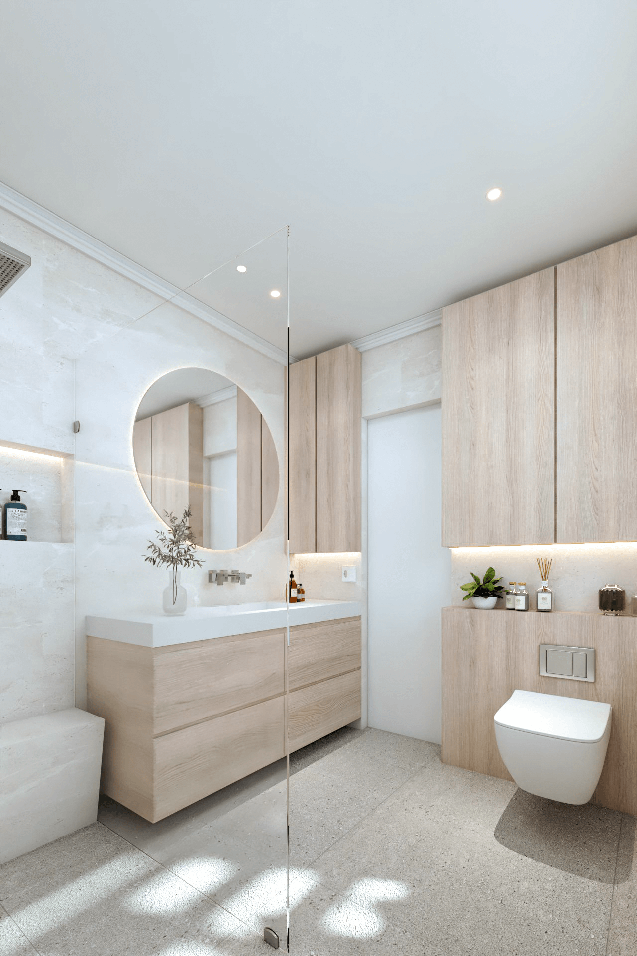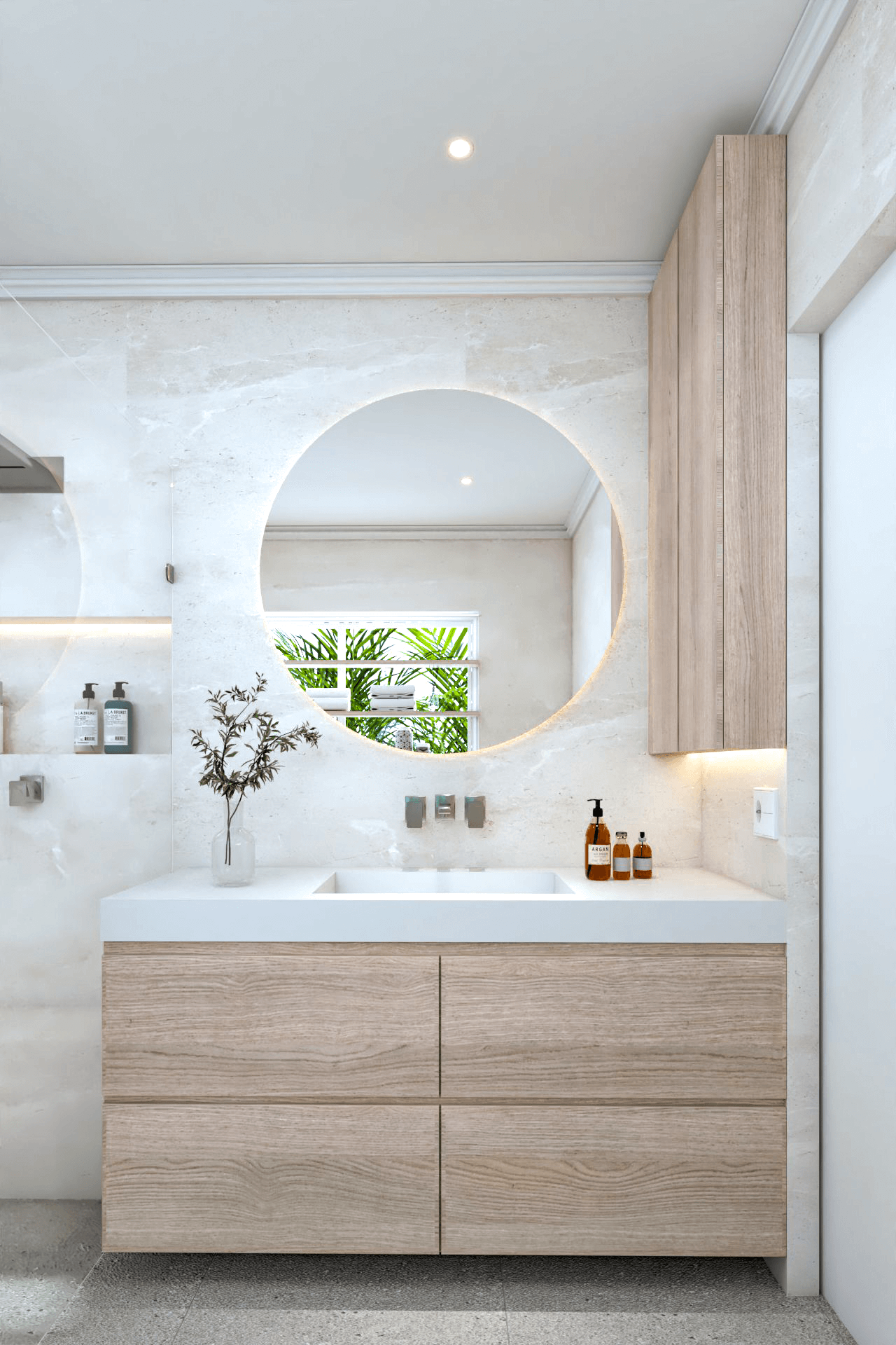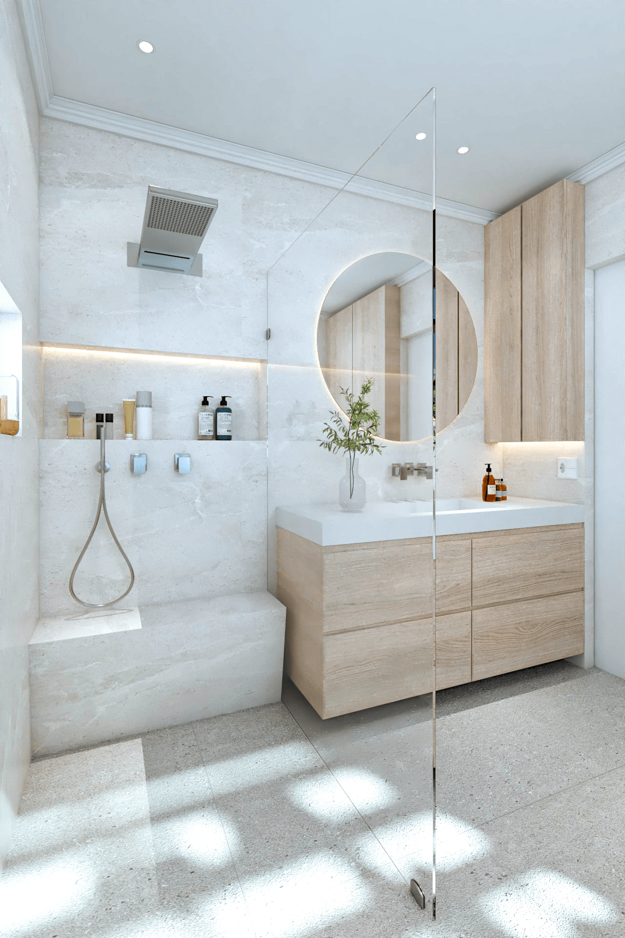 This concept design aims to create a personal Oasis like bathroom. A space that brings a functional design that reflects the client’s wishes for a practical, elegant, functional